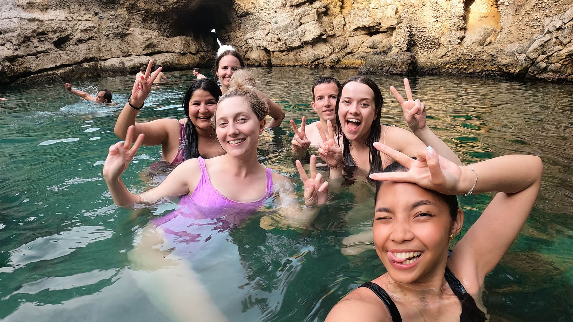 In the late afternoon, meet up with the group and your tour leader for a breathtaking excursion to an ancient Roman natural pool. Set against a backdrop of Roman ruins and surrounded by crystal-clear emerald waters, this stunning location offers unbeatable views of the coast. As the sun sets, enjoy a refreshing swim and a drink, making this the perfect way to cap off your day in paradise.